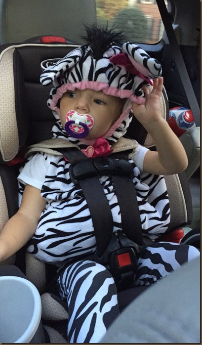 The day before we headed to Statesboro we took our little Zebra to Trunk or Treat for practice…..